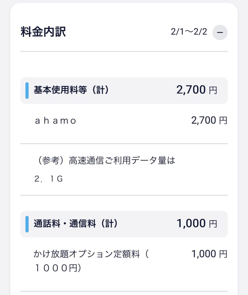 ahamoの料金はとてもシンプルで、基本は月額2,970円(税込)で30GBが使えます。