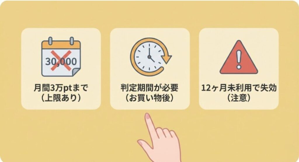 ハピタスはメリットが多いサービスですが、利用前に知っておくべき注意点も存在します。後から「こんなはずじゃなかった」と後悔しないために、デメリットも正しく把握しましょう。代表的な3つのポイントを解説します。