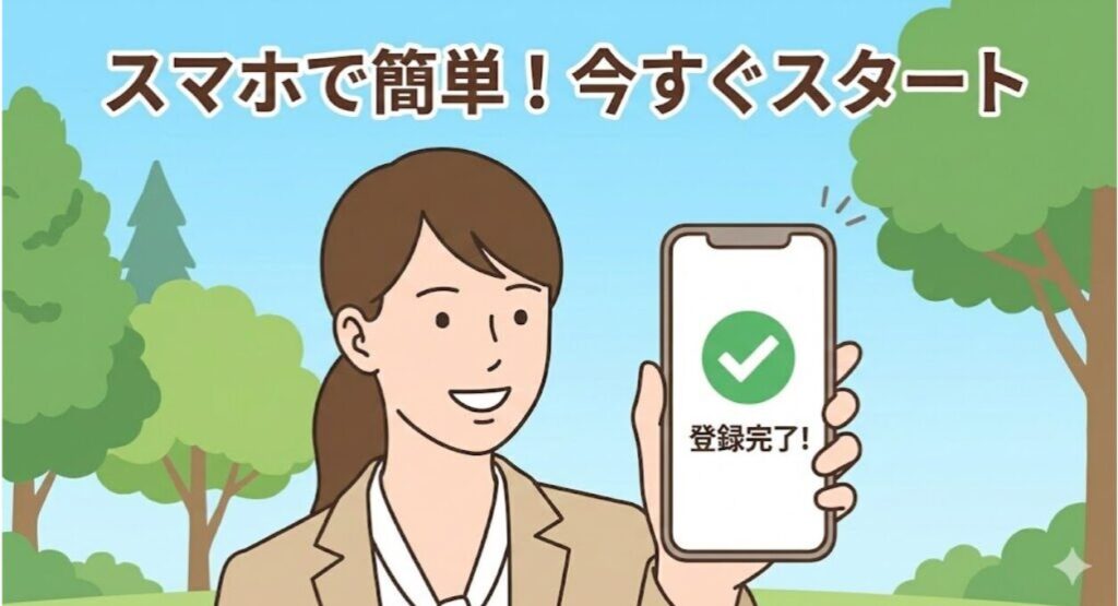 スマホで数分で登録完了!?それなら今すぐできそう!面倒な手続きがないのは助かるなぁ。
