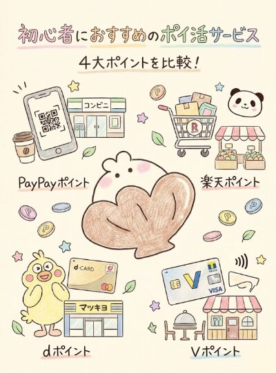 ここでは、2026年3月時点で初心者が使いやすい4つのポイントサービスを比較します。どれが「一番お得か」は使い方によって異なるため、自分のライフスタイルに合ったものを選ぶことが大切です。