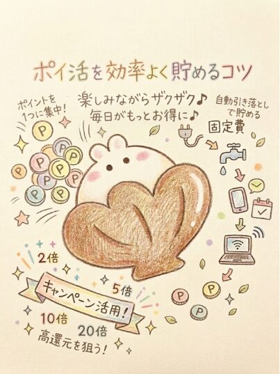 | ポイント目的で余計な買い物をする | 「ポイントが2倍だから」と不要なものを買うと出費が増える。「必要な買い物でついでに貯める」が基本。 |