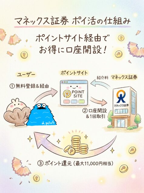 ポイントサイトを経由して証券口座を開設すると、サイト運営会社から紹介料の一部がポイントとして還元されます。