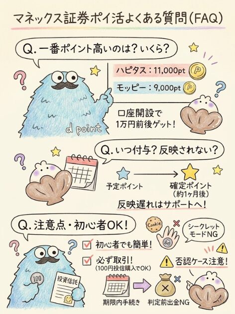 マネックス証券のポイ活に関してよくある疑問にまとめて回答します。