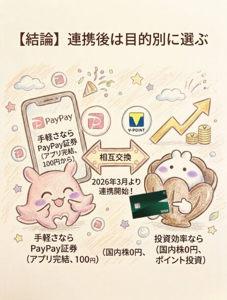 【結論】連携後は「投資効率ならSBI証券、手軽さならPayPay証券」