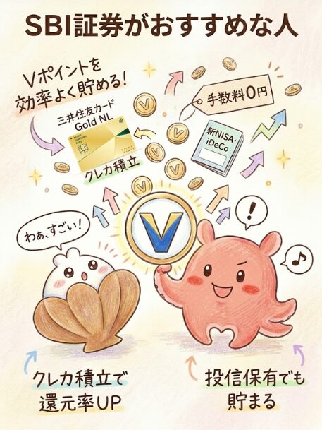 SBI証券は「三井住友カードのクレカ積立でVポイントを貯め、そのポイントをまた投資に使う」という高効率な循環が作れます。