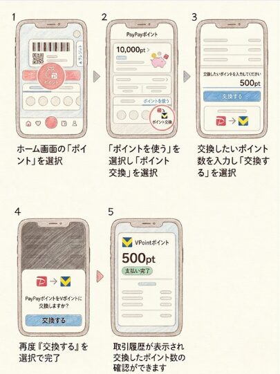 ⚠️ なお、PayPayポイントから交換したVポイントは「利用先限定ポイント」となり、他社ポイントへの再交換やV景品交換には使用できません。利用できる提携先が通常のVポイントより限られる点にご注意ください。